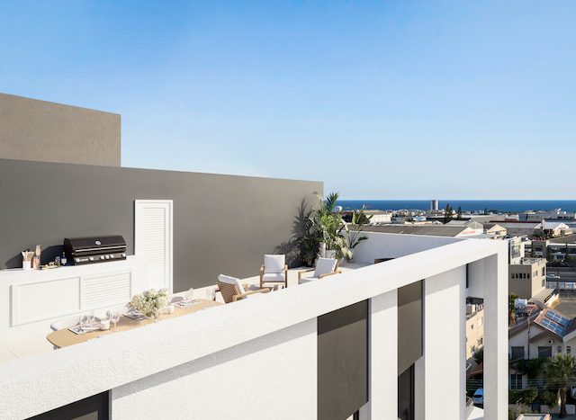 This contemporary private building is located in the area of Agia Zoni, next to all kinds of amenities and within 10mins walk from the sea front is now available. The off plan project has just been released and it will be a modern jewel in the heart of Limassol. The specific 3 bedroom penthouse is found on the 4th-top floor of the residential building and it consists of an open plan living, dining and kitchen area, 3 bedrooms, the master bedroom with ensuite facilities and 1 family bathroom. The penthouse enjoys a lovely roof garden area of 83sqm with panoramic views. There will be an allocated covered parking space and storage space.