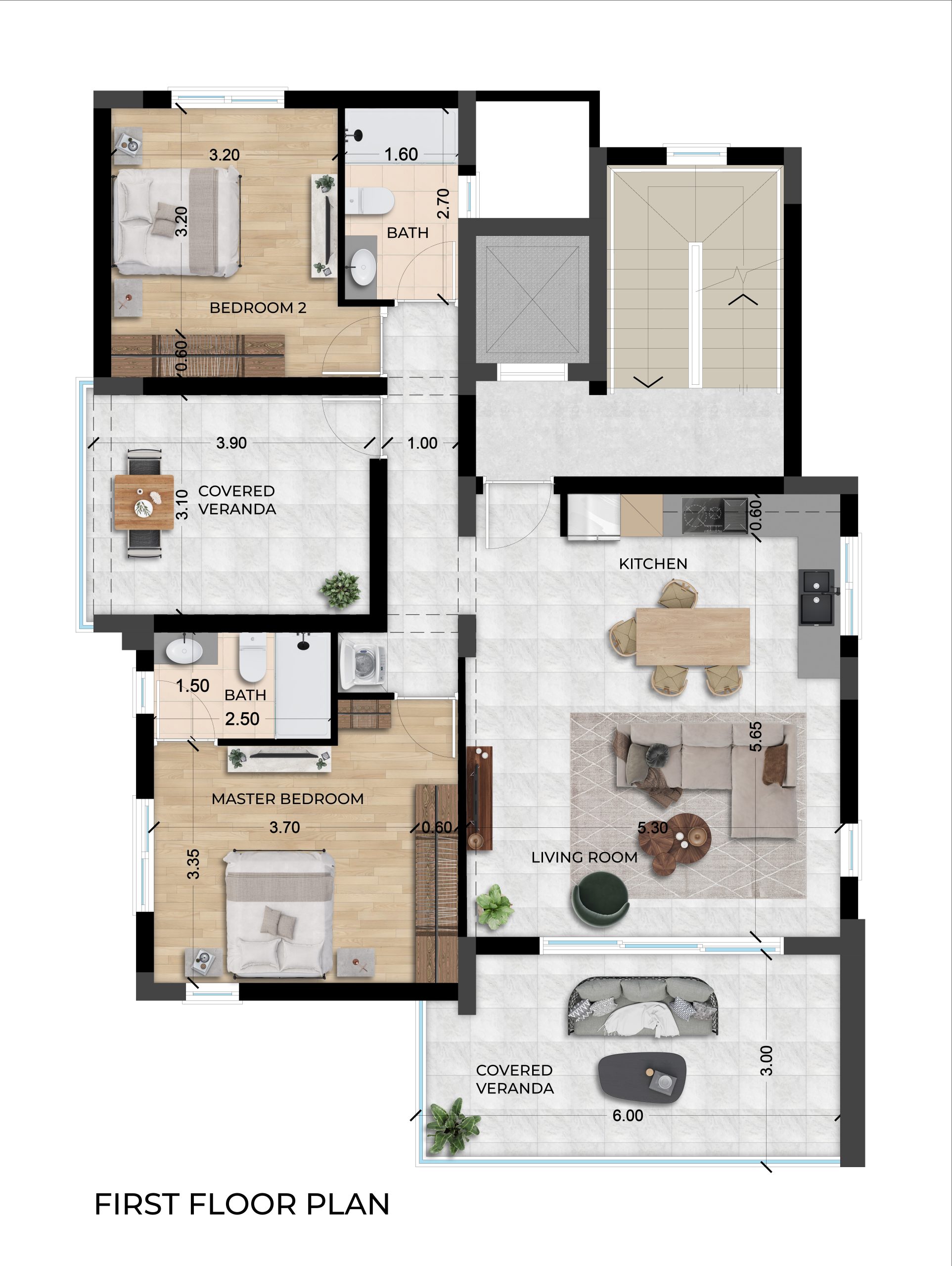 - 2 Bedrooms