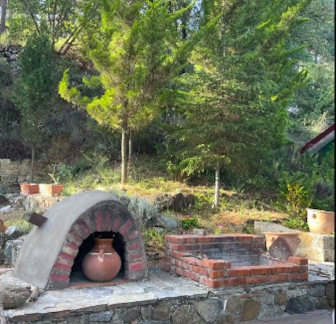 Traditional outdoor earthen table for dining