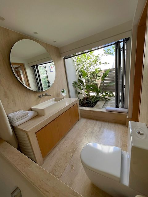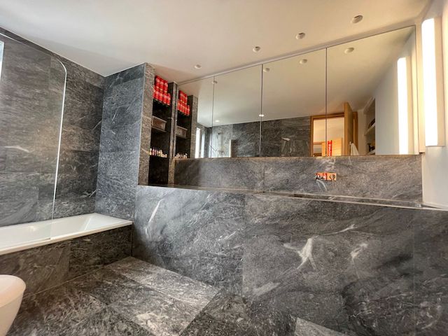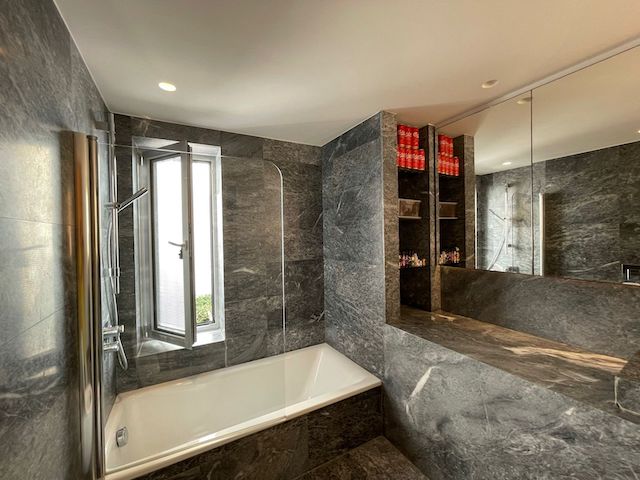Bathroom with Vola fittings and Argos marble