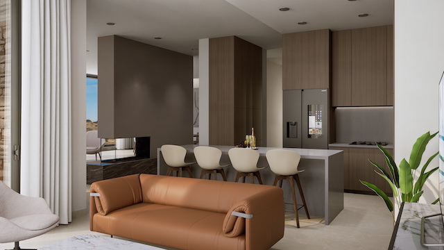 High-quality materials such as exposed concrete and local stone enhance the villas’ modern yet timeless character.