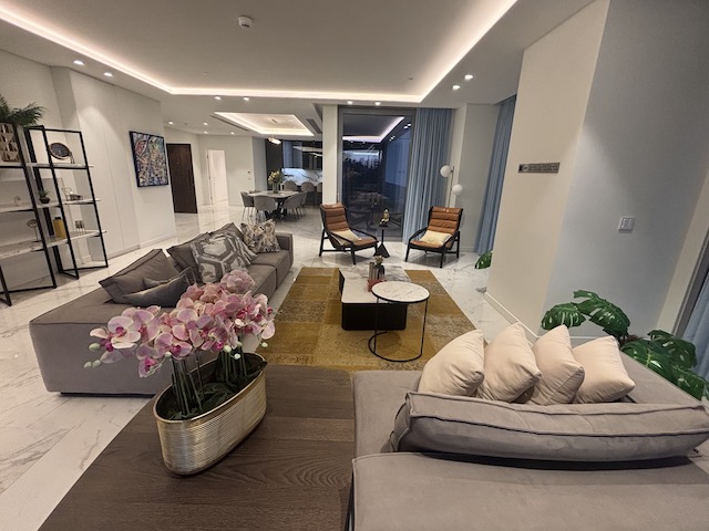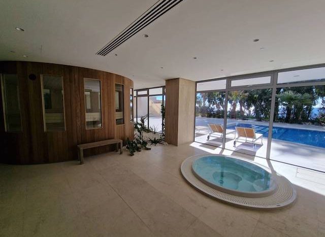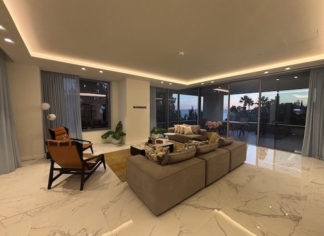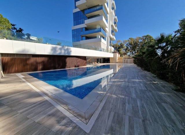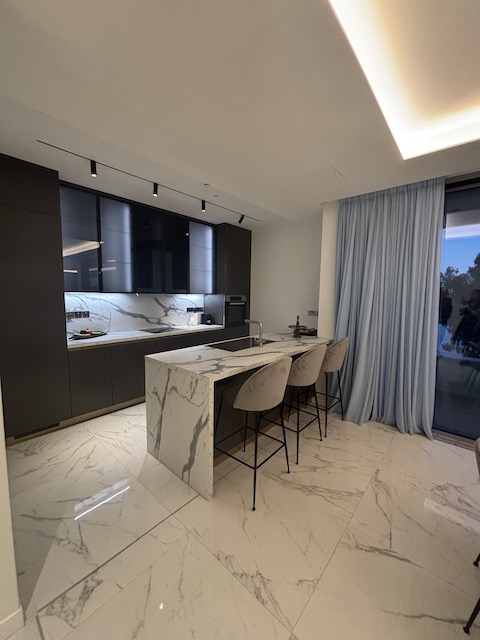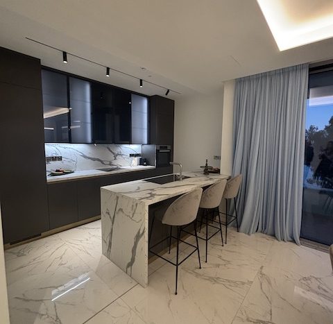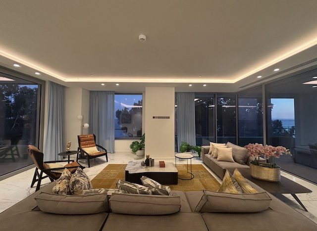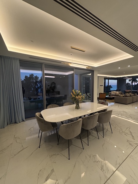This stunning 4 bedroom apartment on the Sea Front of Agios Tychonas is now available for sale. It belongs to a private residential building with large communal swimming pool, outdoor Jacuzzi, deluxe loungers and outdoor sitting area. The building has exclusive access to a state of the fitness center and luxurious spa. It also provides 24 hours security. The building has a prime location, just 30 seconds walking distance from the beach, 2 minutes from 5 star hotels and amenities and 15 minutes from the city center. The apartment situated on the 1st floor. It consists of 4 en-suite bedrooms, 1 guest WC and open plan kitchen with spacious living – dining area.